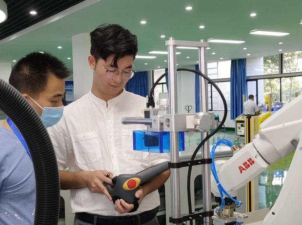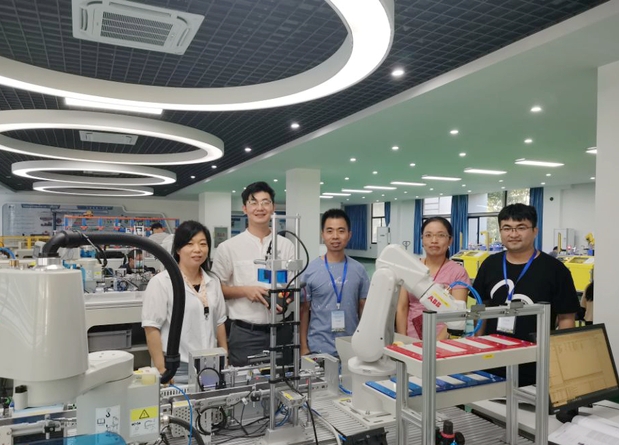 为高质量完成线上线下培训教学任务,机电工程学院为培训班配备了由我校工业机器人教师教学创新国家级团队成员和经验丰富的企业培训师组成的优秀师资队伍,共同规划和研究项目实施方案,设计培训方式,确保培训有序推进。本次培训依托的设备为最新引进的工业机器人操作与运维1+X鉴定工作站(FANUC机器人)、军用手机装配工作站(ABB机器人)和机器人应用实训操作平台(华数机器人)等,技术高端前沿,展现了我校工业机器人专业的雄厚实力。