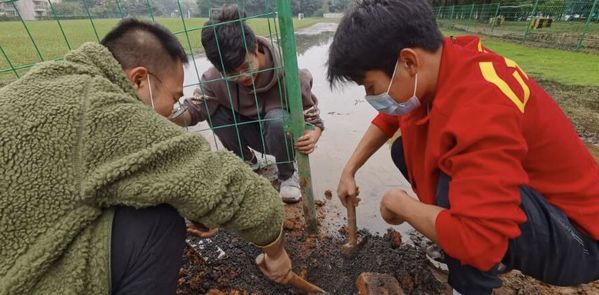 黄国伟老师带领学生修复西区围栏