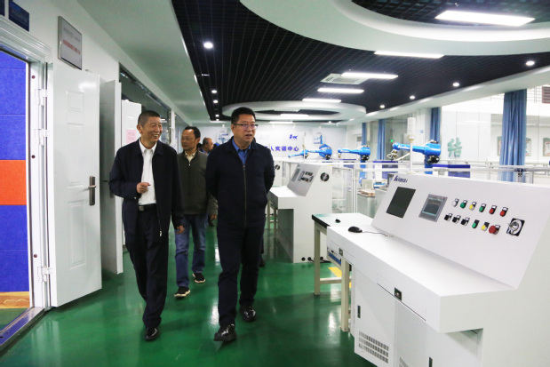任占营(右二)一行参观武汉职业技术学院实训场地