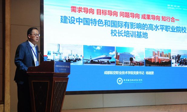 成都航空职业技术学院党委书记杨建国作汇报