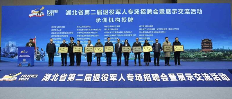 武职网讯(通讯员 李静)12月8日,湖北省第二届退役军人专场招聘会暨展示交流活动启动仪式在省奥林匹克体育中心体育馆举行,公布了2021年湖北省首批29家省级退役军人职业技能培训承训机构名单并授牌,武汉职业技术学院被授予首批“省级退役军人职业技能培训承训机构”。