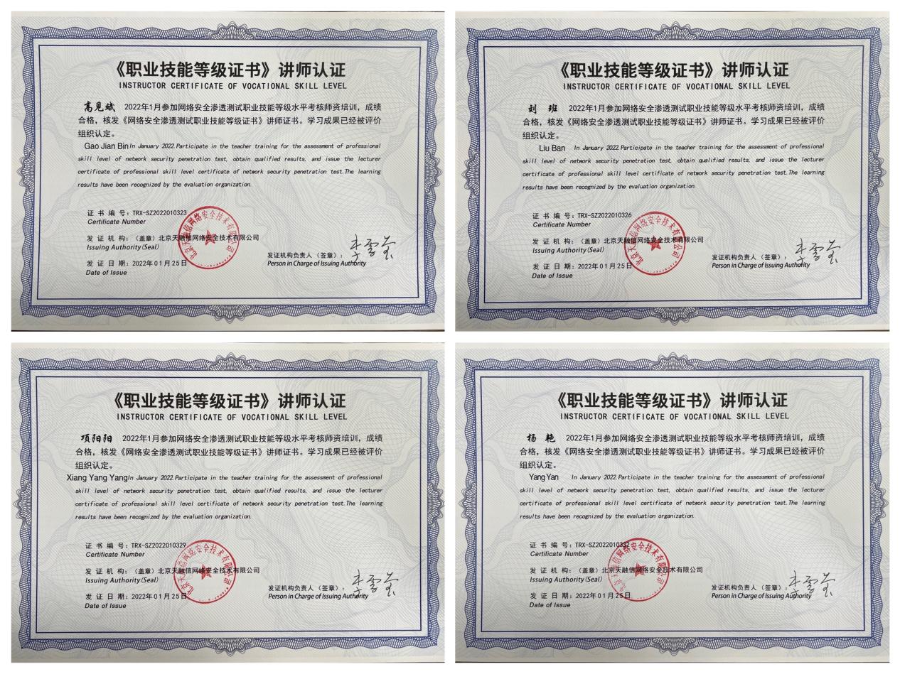 信创学院教师获“网络安全渗透测试职业技能等级证书”讲师认证