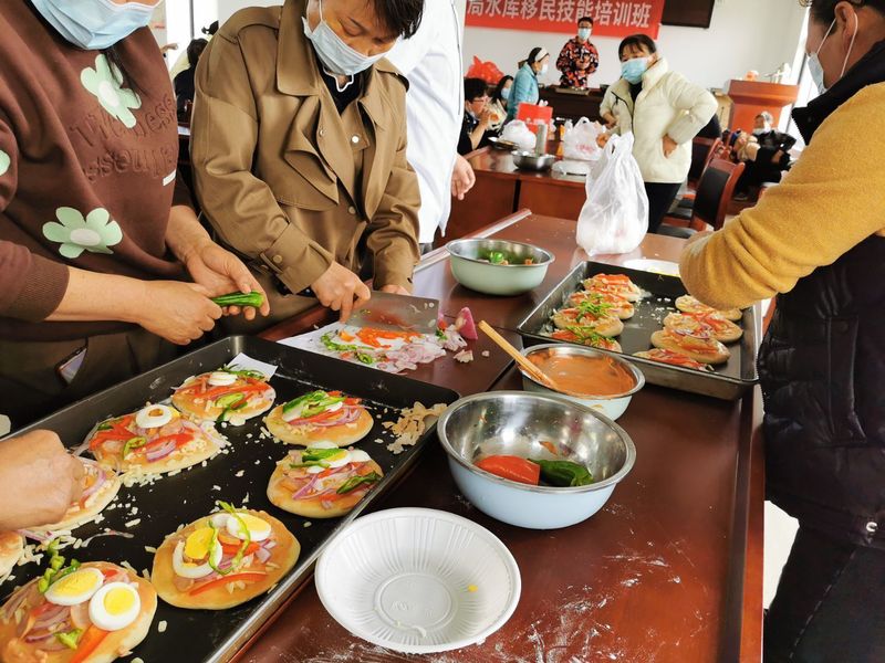 为做好大中型水库移民村的后期帮扶工作,此次培训分2期进行,实行滚动开班,共17天。培训班内容紧密结合当前库区移民紧缺的中西面点、烘焙、新型农民电商等技能技术开展,主要采取了集中理论学习、实践操作、外出参观、线上交流等多种培训形式进行,把技能培训班举办在移民群众家门口。