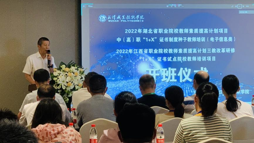武职网讯(通讯员 朱悦坤 辜璇 姚南)8月1日上午,由武汉职业技术学院电子信息工程学院、信创学院承办的湖北省职业院校教师素质提高计划项目中高职“1+X”证书制度种子教师培训(电子信息类)、江西省职业院校教师素质提高计划三教改革“1+X”Web前端开发培训项目在武汉顺利开班。