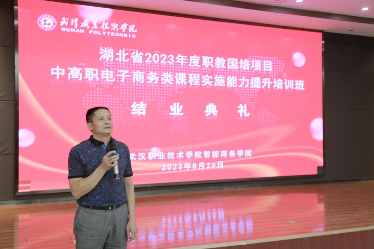 武职网讯(通讯员 杜志琴 摄影 杨俊超)8月26日,湖北省职教国培项目中高职电子商务类课程实施能力提升培训在武汉职业技术学院圆满结束。武汉职业技术学院副校长李仁平、湖北省20余所中高职院校的80名骨干教师以及智能商务学院培训服务团队参加结业典礼。