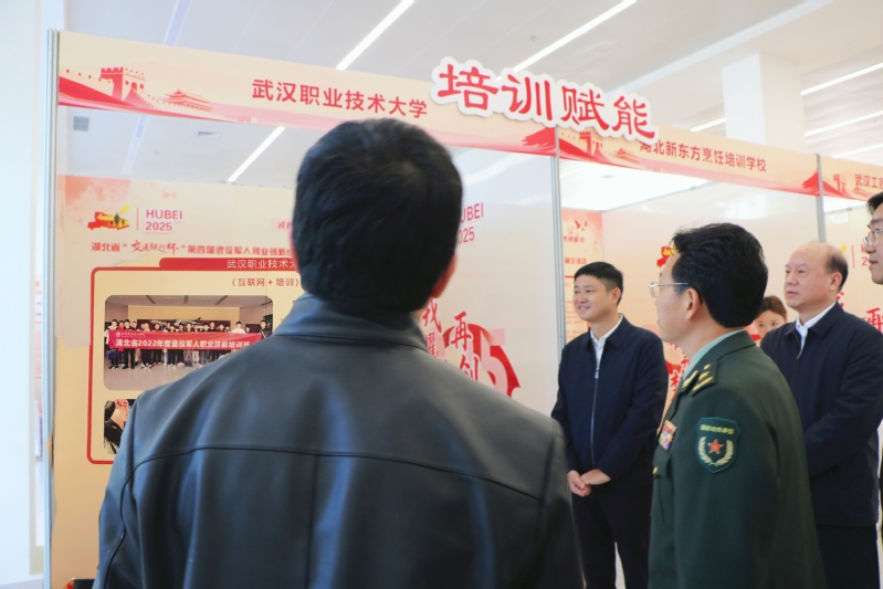新闻网讯(通讯员刘莎莎)11月13日,湖北省第四届退役军人创业创新大赛决赛暨成果展示展交活动在武汉举行。武汉职业技术大学受邀参展,并作为全省退役军人教育培训承训机构的唯一代表,为省级领导现场解说“培训赋能”主要做法,获一致好评。武汉职业技术大学党委副书记田明华出席活动。